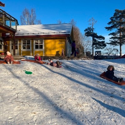 Det er nydelig når akebakken fylles med akkurat nok snø til å suse nedover med akemattene igjen ;)
